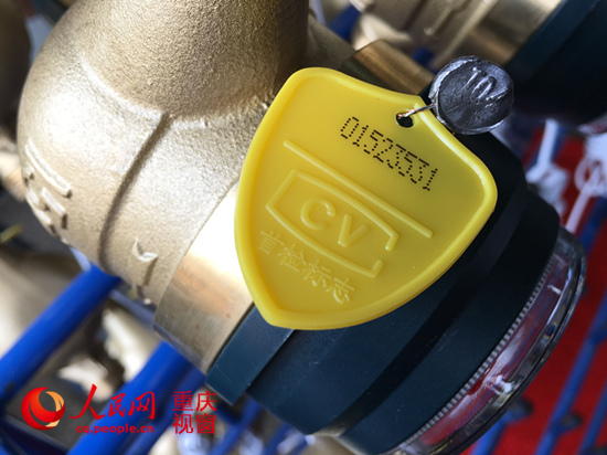 在該水表質量管控的最后一個環節,記者看到,工作人員正將一個黃色盾牌形狀的“首檢標志”懸掛在檢測合格的水表上?,F場工作人員介紹,有了這塊標志后,就意味著它可以進入市民家庭使用了。